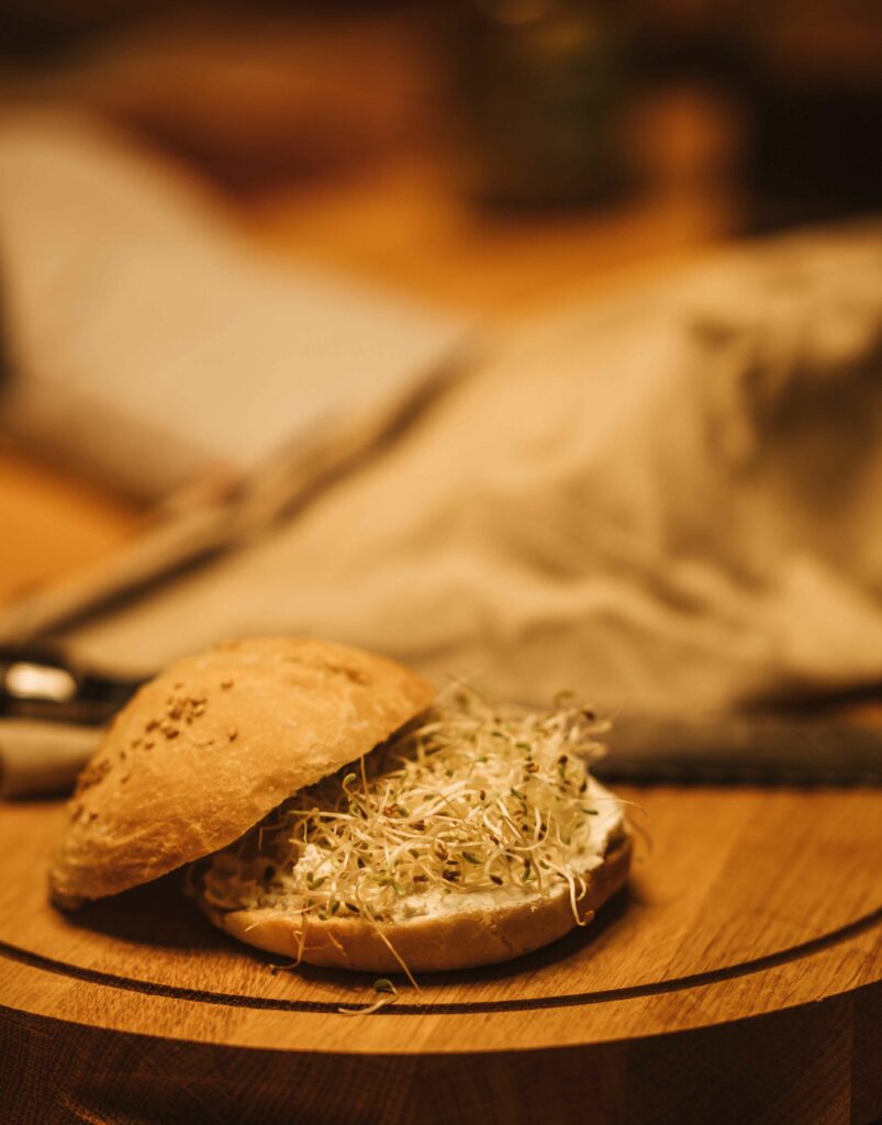 Brötchen mit Streichkäse und Kresse