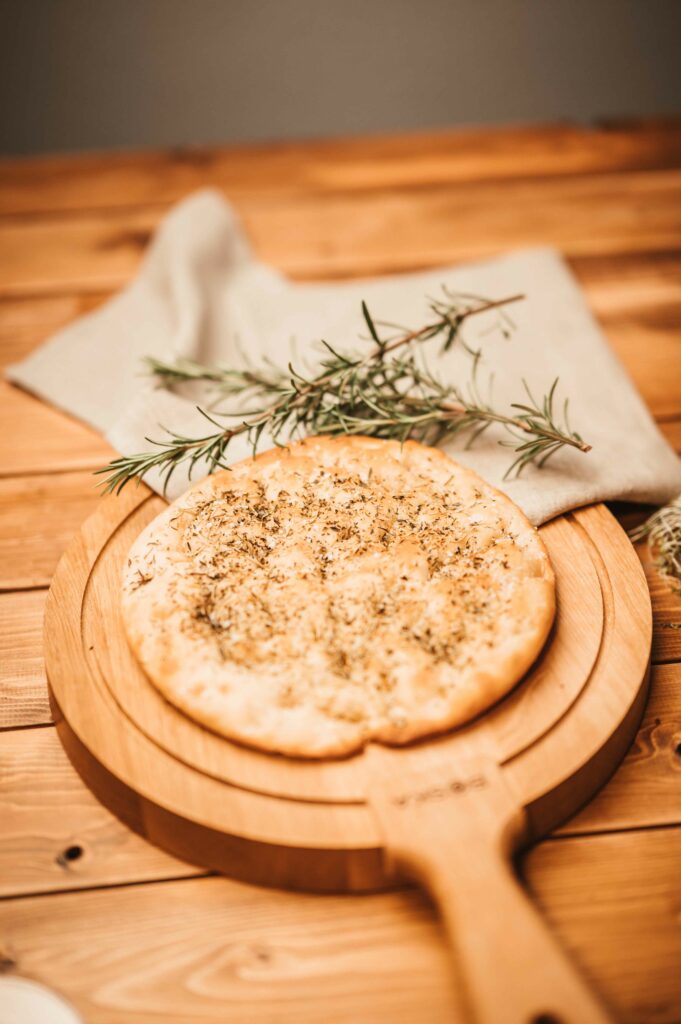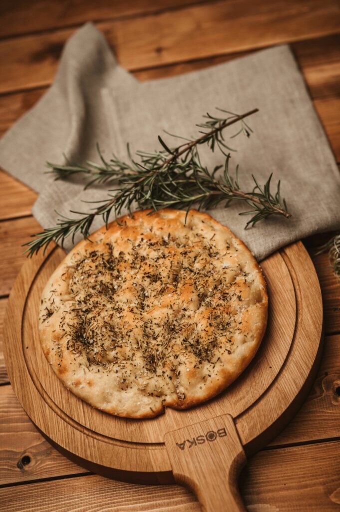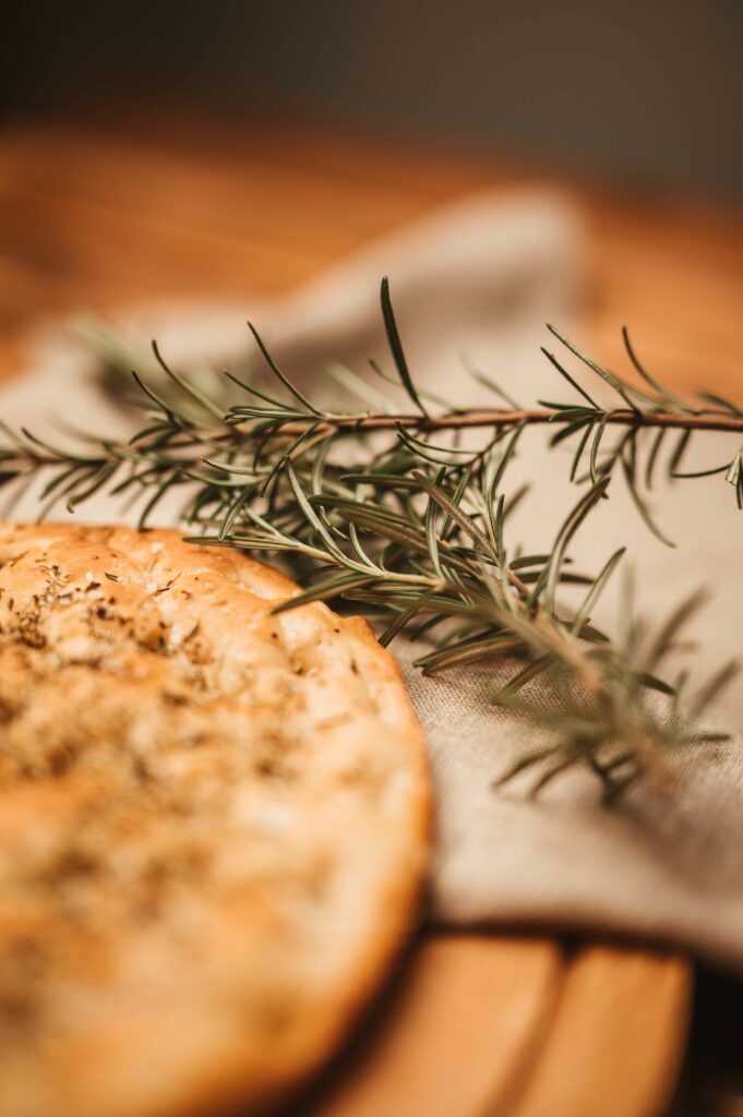 Focaccia ist ein ligurisches Fladenbrot aus Hefeteig. Beim Backen werden Olivenöl, Salz und verschiedene Kräuter benötigt. Die Kräuter Rosmarin, Thymian, Oregano und Basilikum eignen sich hierfür hervorragend.